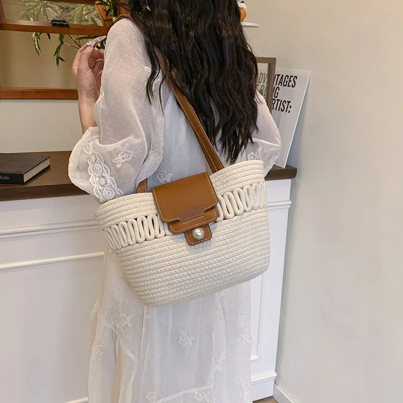Step into the season with the refined charm of the Spring-Summer Woven Elegance Tote — a versatile handbag designed for modern women who appreciate both style and practicality. Featuring a soft yet durable weave, this tote transitions effortlessly between handheld, shoulder, and armpit carry, giving you flexibility for any occasion.