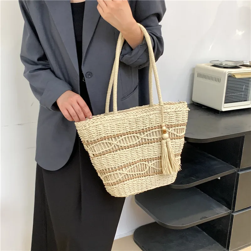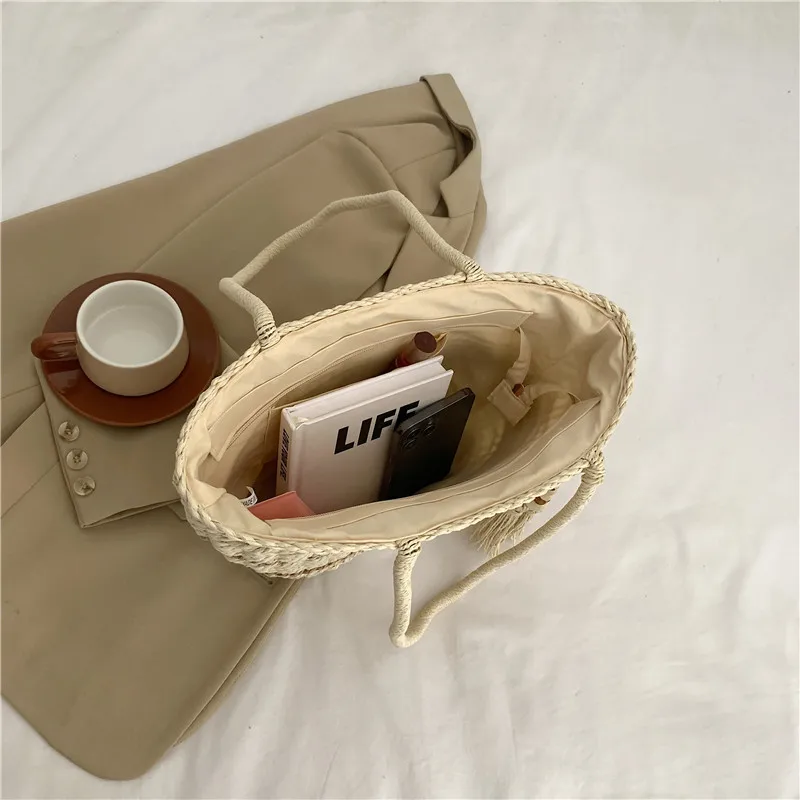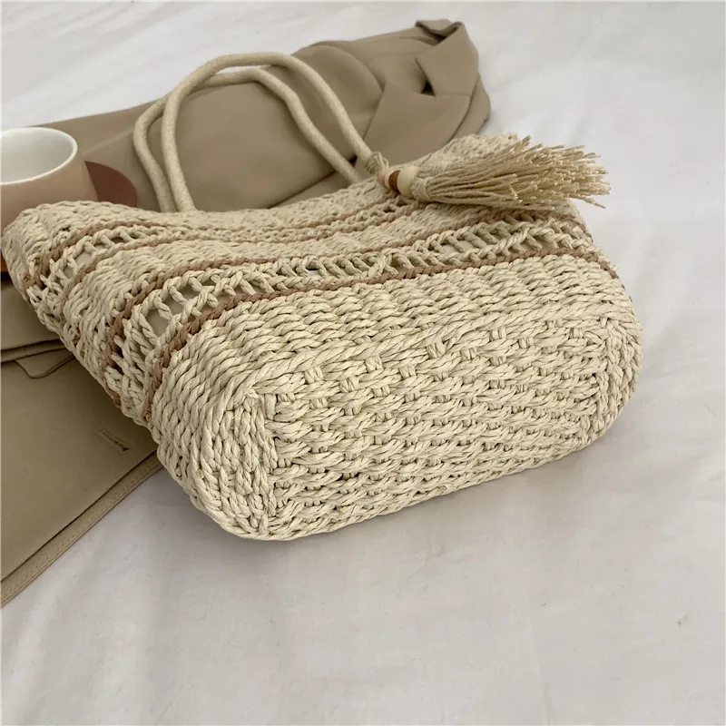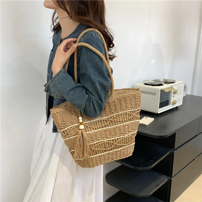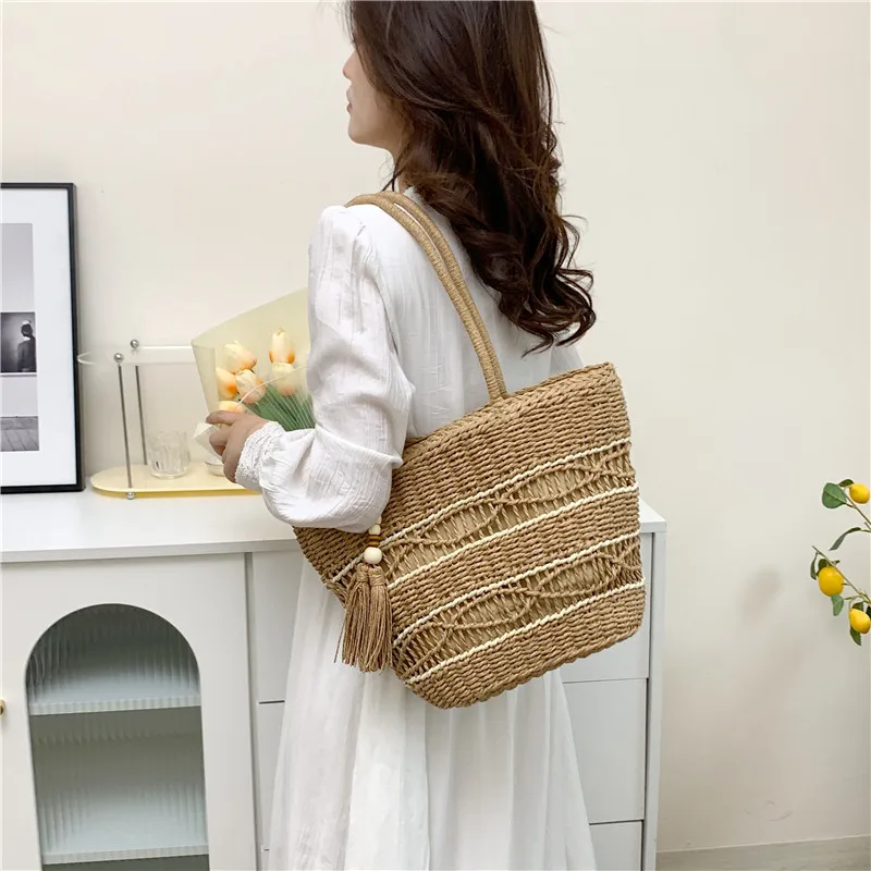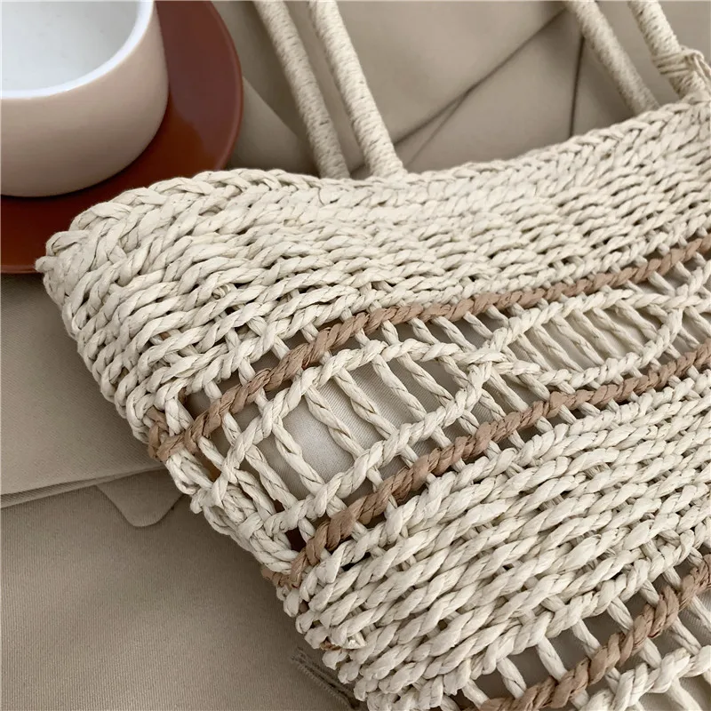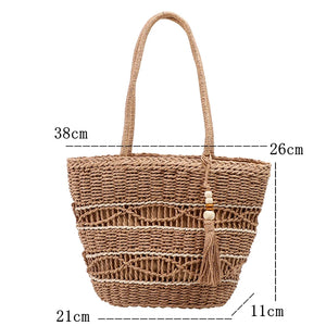 Casual Large Capacity Straw Woven Tote Bag Summer Beach Holiday Women Shoulder Bag Fashion Luxury Hollow Design Female Handbag
