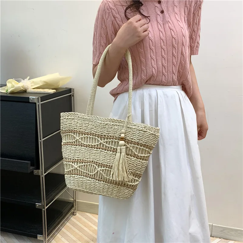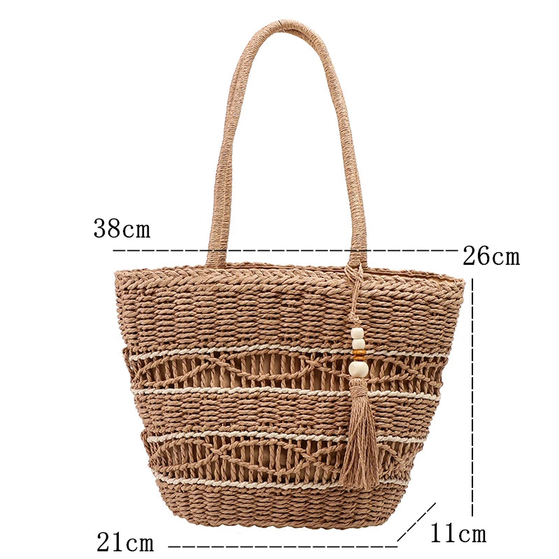 Designed to be worn comfortably over the shoulder, this casual yet elegant bag transitions effortlessly from beachside lounging to shopping in town. Its durable construction and timeless design make it a versatile piece for the fashion-forward woman who values both form and function. Whether you're packing for a vacation or heading out for a sunny day, this straw tote brings effortless style and practicality to your look.