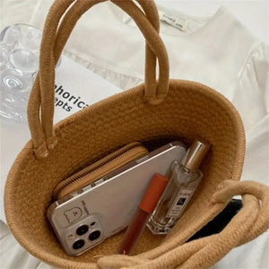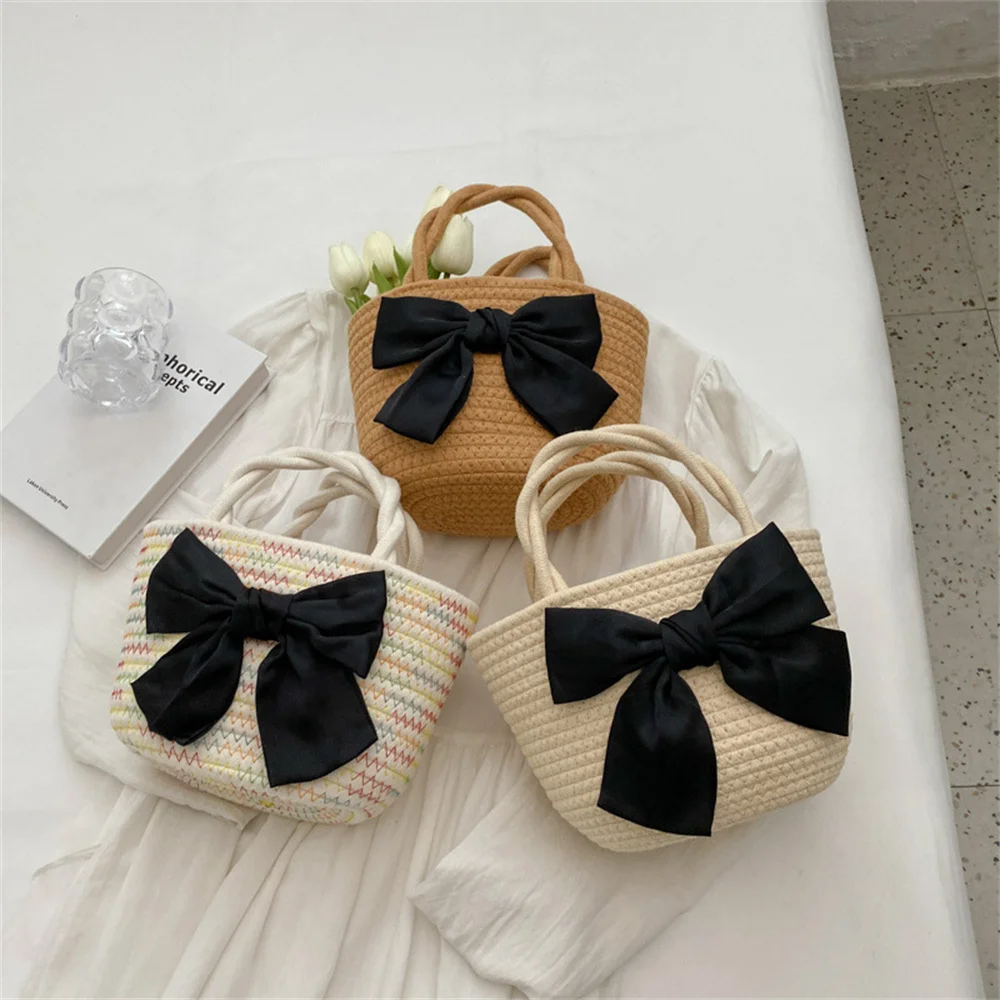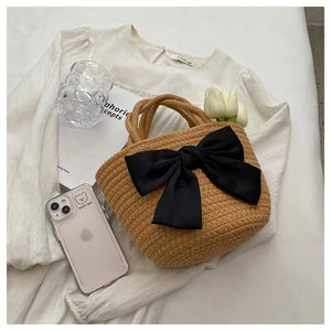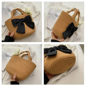 Embrace natural charm and feminine flair with this Handwoven Cotton Bow Tote — the ultimate companion for sunny days and stylish getaways. Made from soft, breathable cotton and beautifully handwoven for an artisanal touch, this shoulder bag features a generously sized interior that holds all your summer essentials with ease. The standout feature? A large, elegant bow that adds a playful yet sophisticated accent to its minimalist design.