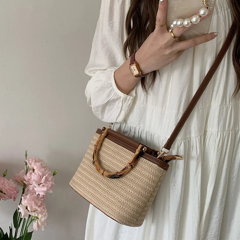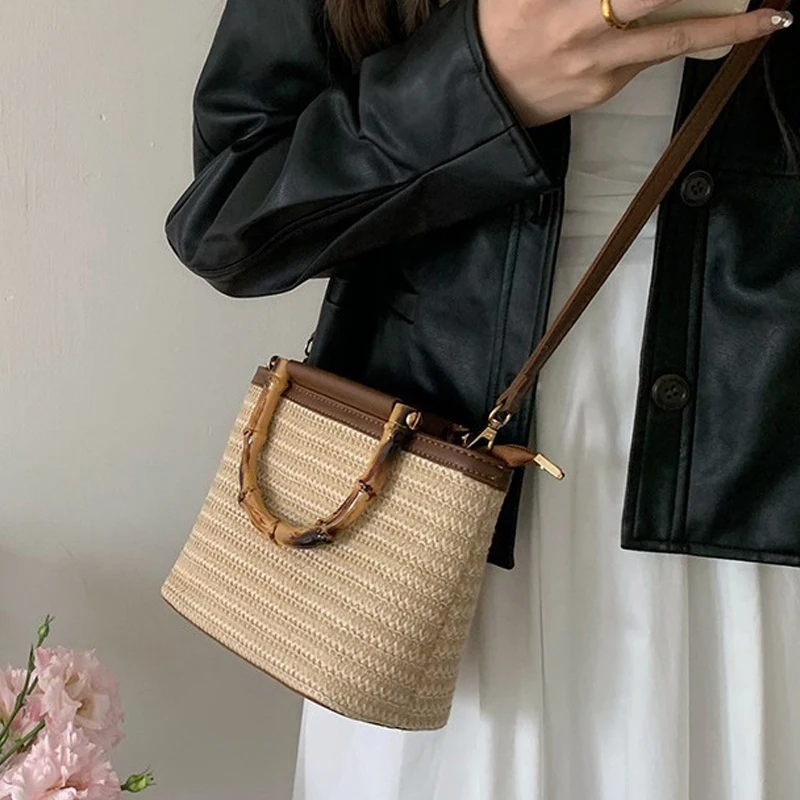 Compact, charming, and full of character — the Woven Straw Mini Bucket Crossbody is the perfect everyday accessory for women who love understated elegance. Crafted from natural straw and handwoven with care, this small yet functional bag features a relaxed bucket shape that effortlessly complements casual and warm-weather outfits.