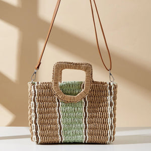Bring effortless elegance to your everyday style with the Soluna Woven Crossbody Tote. Handcrafted with a chic straw-inspired weave, this versatile bag combines modern minimalism with natural charm. Featuring earthy stripes in refreshing tones and a sleek faux-leather strap, it’s the perfect piece to transition from brunch to beach days.