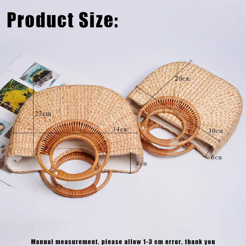 YoReAi Women Handbag Rattan Wicker Straw Woven Bag Large Capacity Bohemia Female Casual Vacation Summer Travel Tote Fashion