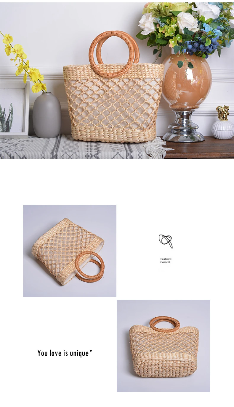 YoReAi Bohemia Rattan Tote Bag For Women Designer Wicker Woven Handbags Hand-Woven Summer Beach Straw Hollow Out Lady Hand Bags